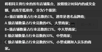以上產品層面基本帶到,那么下面來看下店鋪層面。說流量,最基礎的點在于我們的店鋪層級,京東的層級是分為A+、A、B+、B、C 。層級越高是代表獲得流量的天花板越高,我們日常需要多做數據維護,保證我們的層級相對穩定且有所提升,這樣我們的流量天花板會越來越高,后續也能帶來更多的流量。