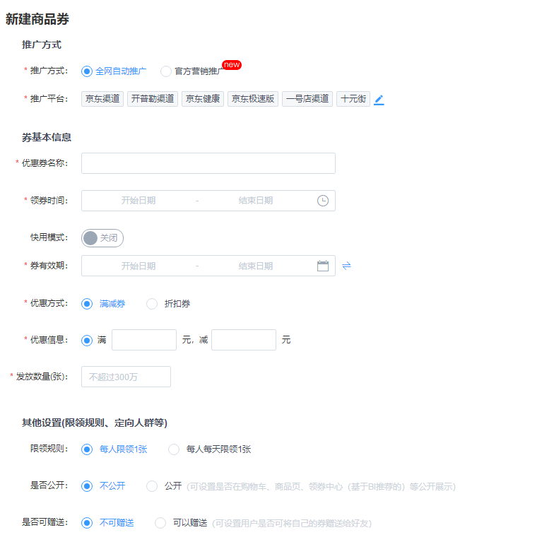 作為一個京東商家,為了店鋪的持續經營,我們不得不做一些促銷活動來吸引買家,最基礎的就是設置優惠券了。