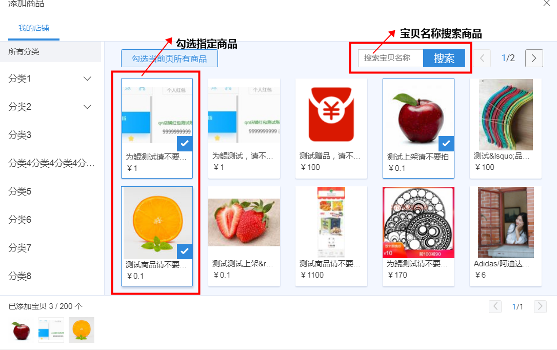 --指定商品編輯話術(shù):點擊編輯,可選擇一個商品或多個商品,一個方案最多可選擇200個商品;