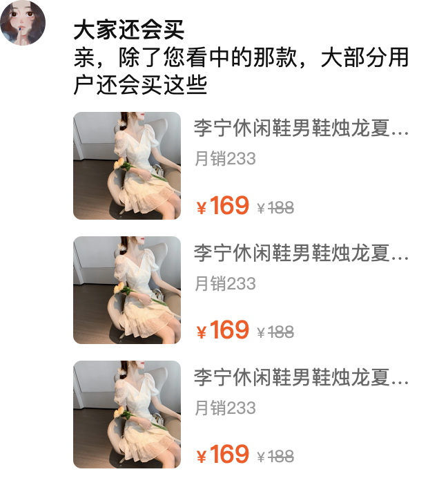 針對極高意向人群,優(yōu)先挑選與搭配商品匹配度較高的用戶發(fā)送搭配商品。卡片信息自動生成不可編輯。