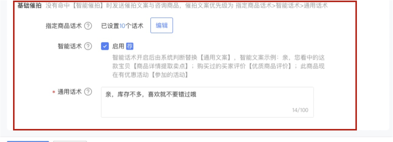 ③通用催拍文案:對所有催拍發(fā)送消息自定義一條通用文案。