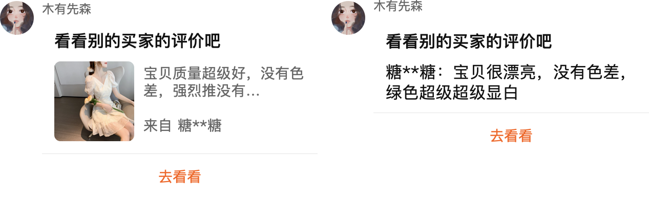 3)、無法匹配策略一、策略二的,但有合適的買家評價內(nèi)容時,推薦【看看別的買家評價】。