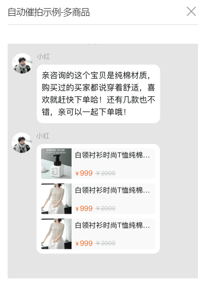 一鍵登錄我的賬戶,隨時查看自動催拍是:在售前階段,買家詢單5分鐘后對未下單的買家可設(shè)置自動推送催拍話術(shù)及商品,幫助商家實現(xiàn)對有意向客戶的下單提醒,從而促進(jìn)店鋪成交轉(zhuǎn)化。